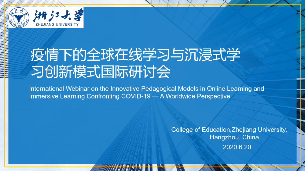 6月20日,经教育部国际合作司批复,由浙江大学主办、浙江大学教育学院承办、浙江大学信息技术中心合办的“疫情下的全球在线学习与沉浸式学习创新模式国际研讨会”顺利在线召开。