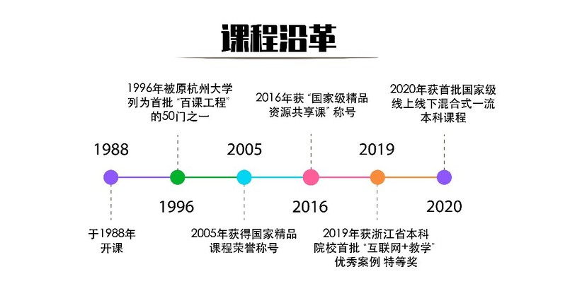 《教学理论与设计》于80年代开课,1996年被原杭州大学列为首批“百课工程”的50门之一,2005年获“国家精品课程”荣誉称号(是全国课程与教学论专业的首门国家精品课程),2016年获“国家级精品资源共享课”称号,2019年获浙江省本科院校首批“互联网+教学”优秀案例特等奖。