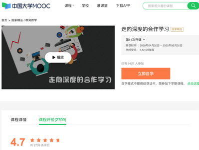 课程自2018年春夏开始尝试混合式教学,已实施三个长学期:第一轮线上线下混合式学习主要采用了自主开设的MOOC《走向深度的合作学习》,该MOOC获2018年“国家精品在线开放课程”荣誉称号;第二轮和第三轮线上线下混合式学习除《走向深度的合作学习》外,还采用了另一门MOOC《掌握教学设计》,以SPOC的形式开展混合式教学。