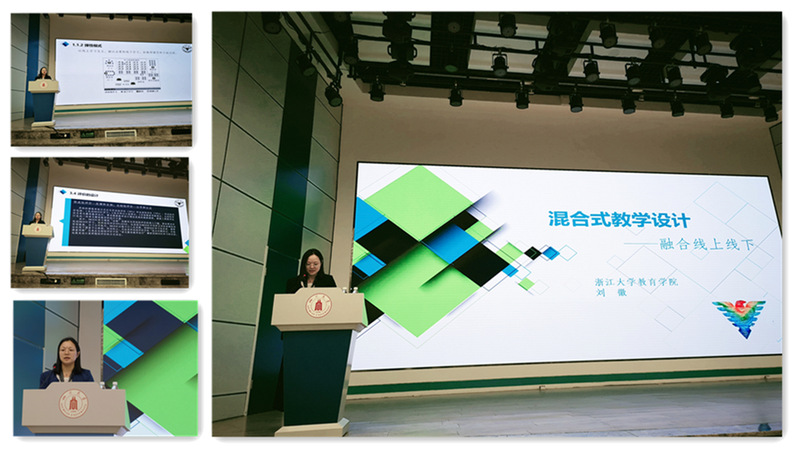 团队充分发挥专业研究优势,以研究促教学,为推进混合式教学的中国实践作出贡献。盛群力老师领衔团队追踪和接轨国际教学理论与设计研究的新趋势,翻译并出版了“当代前沿教学设计”等系列译丛。刘徽老师对混合式教学设计等问题开展实证研究,论文《什么是混合式教学设计的难点?——基于Rasch模型的线上线下混合式教学设计方案分析》发表于《中国高教研究》,并且应邀在四川大学召开的“打造中国金课研讨会”上面向全国100多所高校的教务处领导及教师作“混合式教学设计——融合线上线下”的报告,反响热烈。刘徽老师还指导9位本科生发表了“混合式学习”的组稿,引起了广泛关注。