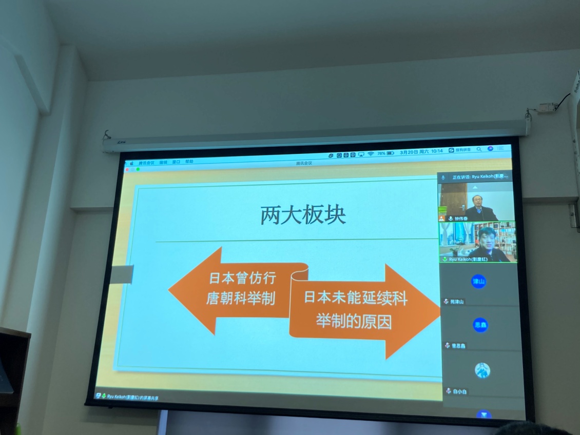 2021年3月20日上午,日本立命馆大学教授、斯坦福大学特聘研究员刘庆红教授应浙江大学科举学与考试研究中心邀请作题为“浅析日本科举制度”的讲座。讲座由“百人计划”研究员李木洲主持,浙江大学文科资深教授、浙江大学科举学与考试研究中心主任刘海峰教授,博士后朱沛沛以及教育史专业科举学研究方向等20余位师生参加了线上、线下报告会。