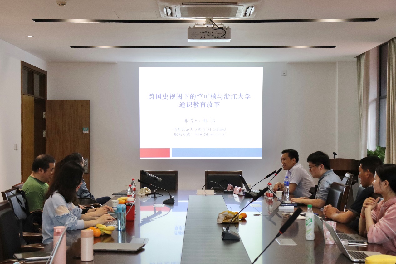5月14日上午,中国教育学会教育史分会副秘书长、首都师范大学教育学院副教授林伟应邀在我院作题为《跨国史视阈下的竺可桢与浙江大学通识教育改革》的学术讲座。本次活动系教育学院青年教师联谊会“青年创新团队培养”系列活动、教育学院求是导师学校系列活动和教师教学发展系列活动之一。教育学系陈胜副教授、王慧敏副教授、浙江大学校史研究中心的三位老师以及20余名研究生参加此次讲座。讲座由教育学系副教授王慧敏主持。