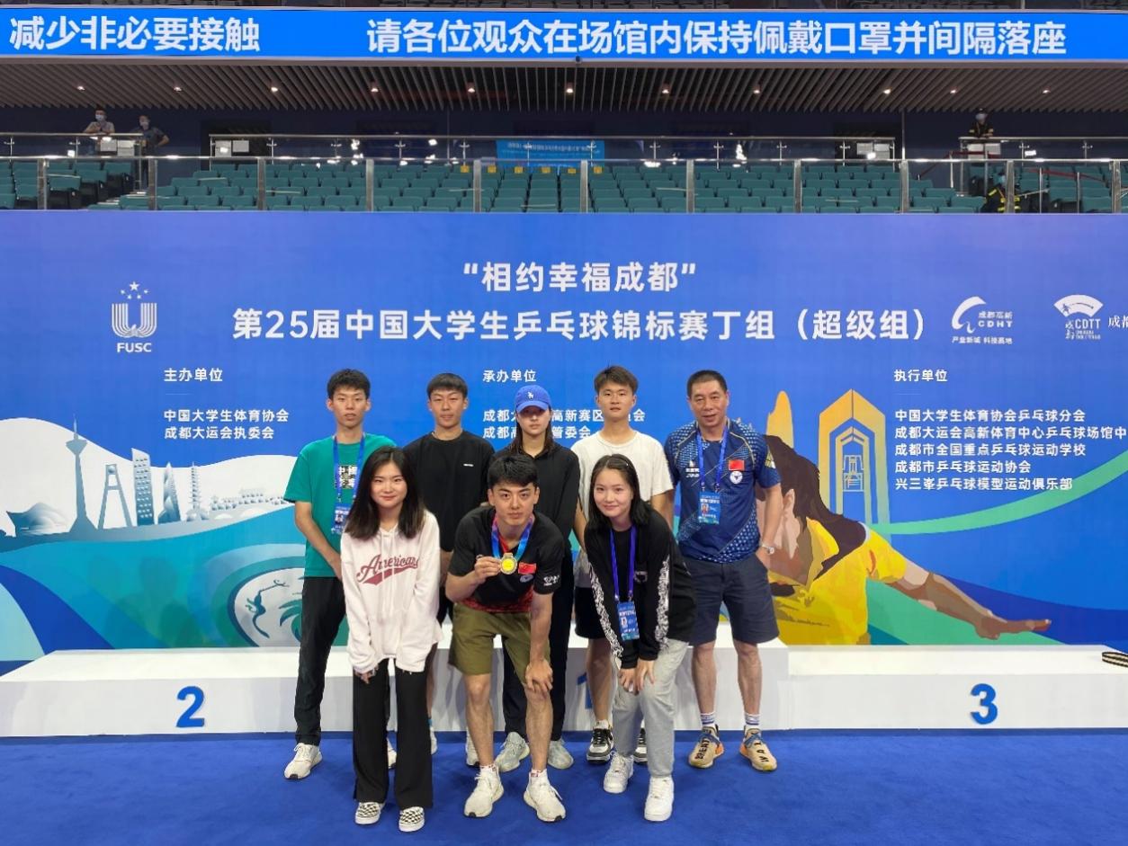 2021年5月17日-21日,由中国大学生体育协会主办的“相约幸福成都”第25届中国大学生乒乓球锦标赛丁组(超级组)的乒乓球比赛在四川省成都市高新体育中心举行。本次比赛共有来自全国各地24组乒乓球代表队参加。