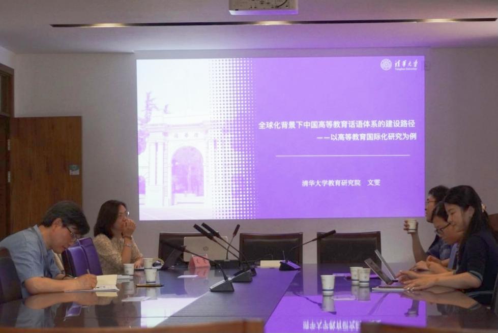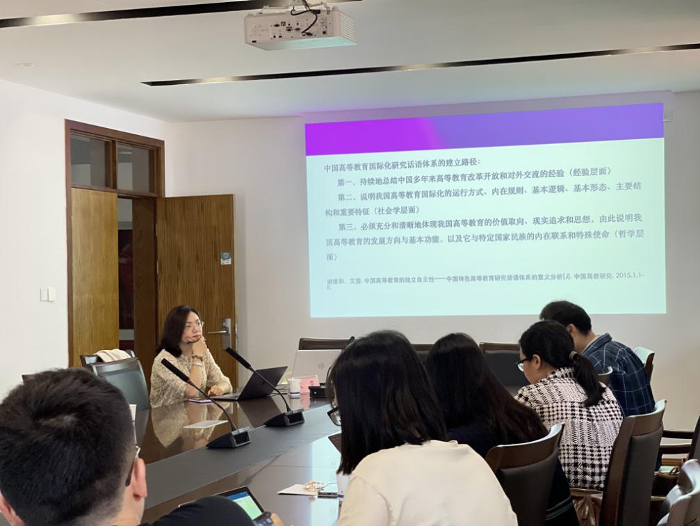 5月31日下午,清华大学教育研究院长聘副教授、高等教育研究所副所长文雯教授应邀参加教育学院青年教师联谊会“青年创新团队培育”系列活动暨求是导师学校系列活动,以《全球化背景下中国高等教育话语体系的建设路径——以高等教育国际化研究为例》为题与我院师生进行学术交流与分享。院长顾建民教授以及多名青年教师、学生参会,活动由“百人计划”研究员吴寒天博士主持。