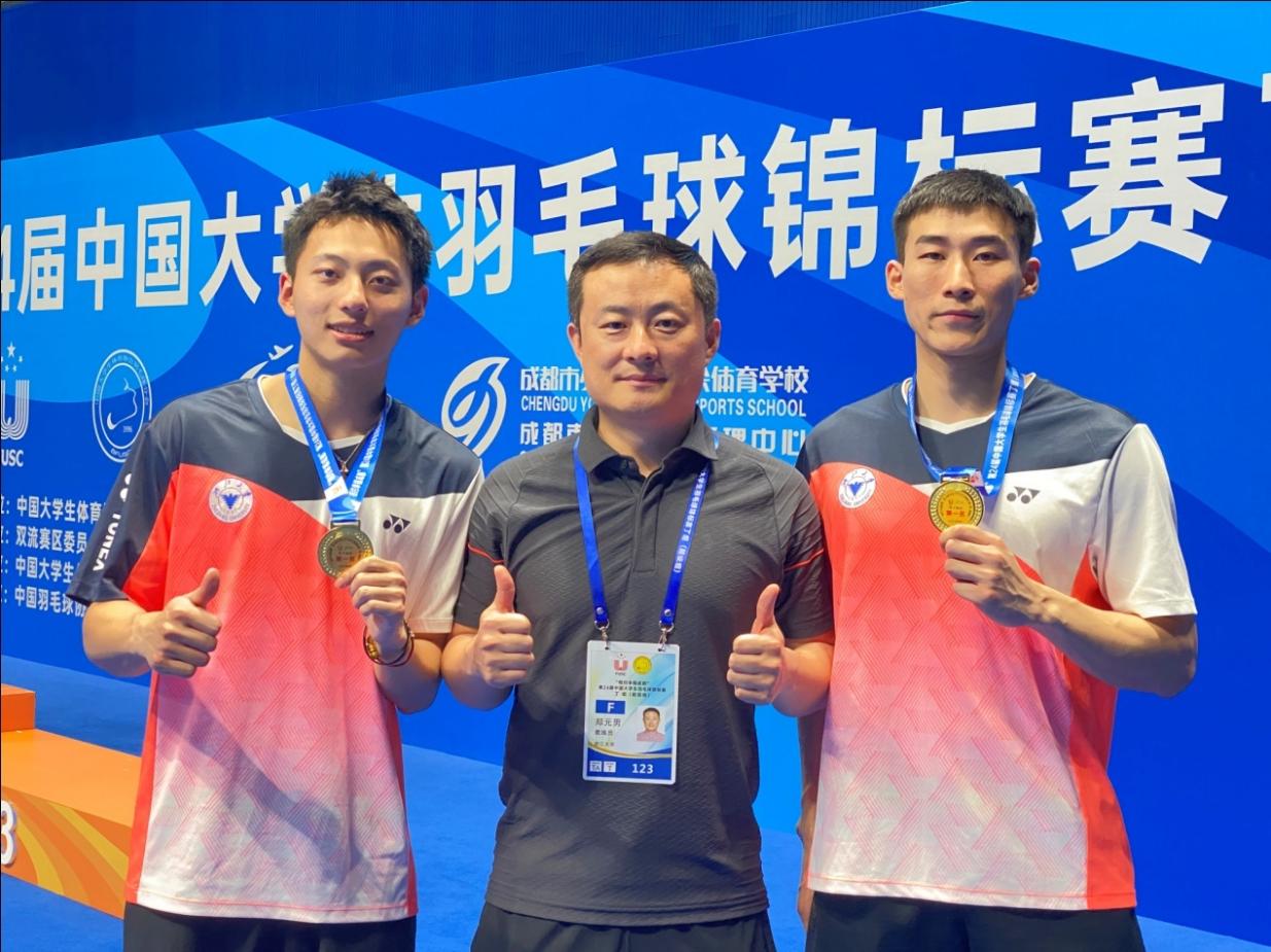 教育学院体育学系运动训练专业董宇轩、董伟杰、方开、沈李舜、周新宇、吕学舟(女)、林昕(女)、许诺(女)、任琳菲(女)组成的羽毛球队代表浙江大学参赛。在教练郑元男老师的带领和悉心指导下,教院学子虽然是首次参加全国高水平大赛,但不惧强敌,以顽强的意志和精湛的技术,超常发挥,勇攀高峰,最终获得混合团体第三名、董伟杰和沈李舜获得男双冠军、董宇轩和方开获得男单并列第三名、吕学舟获得女单第三名的优异成绩。另外,郑元男老师被大会评选为优秀教练员,董宇轩和董伟杰同学被大会评选为优秀运动员。