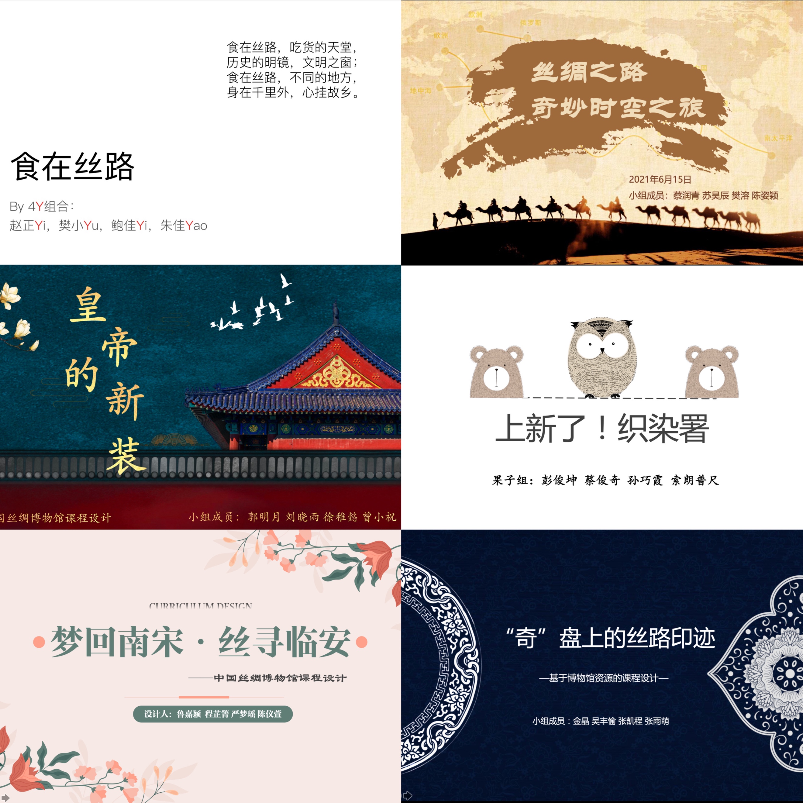 6月15日,2021年春夏学期本科生课程《课程理论与实践》的“博物馆课程设计”展示活动在教育学院大楼118报告厅举行。来自教育学19级的本科生同学展示了《皇帝的新装》《食在丝路》《丝绸之路奇妙时空之旅》《奇“盘”上的丝路印迹》《上新了!织染署》《梦回南宋·丝寻临安》共六组课程设计方案,呈现了同学们一学期以来的理论学习成果以及提升了同学们在教育现场中应用知识、理论联系实践的能力和素养。本次课程展示活动由主讲教师何珊云副教授主持,邀请中国丝绸博物馆副馆长周旸研究员,中国丝绸博物馆科技部杨汝林老师和社教部潘璐老师,绿城育华中学高中课程部主任单岸璋老师和我院祝怀新教授担任本次展示课的点评专家。