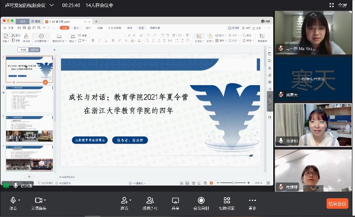 为期两天的夏令营落下帷幕,来自全国的优秀大学生们通过学科介绍、学术报告、“云”游紫金港、成长对话等活动,拓宽了学术视野、增强了科研兴趣、提升了学术认知。期待营员们来年齐聚求是园,携手浙大教院,共筑新时代教育梦!