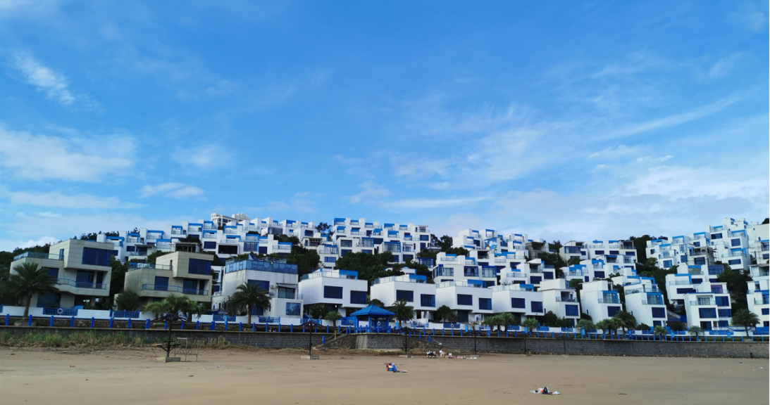 第三天,大家来到浪漫的爱琴海沙滩。这里的建筑风格仿古希腊风,蓝白的房子笼罩在一片绿色森林之中;这里的海水清澈、沙子细软,光着脚丫踩下去也不会硌脚,大家漫步沙滩、流连忘返。