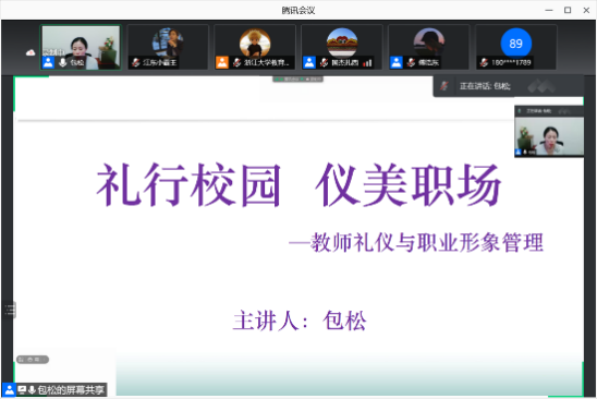8月13日下午,包松老师以“礼行校园 仪美职场——教师礼仪与职业形象管理”为主题,与参训教师进行了一场“教育与礼仪”的对话。从“礼”入手,包松老师指出,“礼”是中国文化的突出精神,源于人的恭敬之心、辞让之心,并强调师生之间、人与人之间要做到“表情有度”“身体有度”“言语有度”。她表示,教师应当看到成绩、表现之外学生作为人本身的特质,认识到礼仪的本质在于表达对他人、对自我的尊重,最终达成“德成于中,礼行于外”。包松老师随后从称呼礼仪、问候礼仪、倾听礼仪、言谈礼仪和空间礼仪五个方面,阐述作为一名人民教师在校园当中应该贯彻的礼仪规范。她最后强调,高尚的职业精神、良好的外表形象、得体的行为举止方能成就一名完美的人民教师。