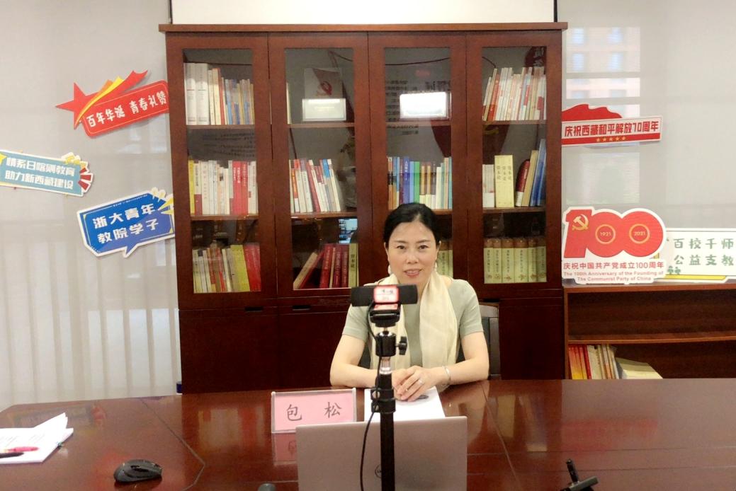 8月11日上午,“百校千师”线上公益支教活动正式开班。日喀则市教育局副局长孙桂芳、浙江大学教育学院党委副书记包松老师出席开班仪式,200余名参训教师和实践团师生代表共同出席。孙桂芳副局长表示,虽然疫情影响了线下活动开展,但阻隔不了汉藏人民的情谊相连。他对教育学院师生实践团表示感谢,并要求全体参训教师提高站位、把握重点,充分珍惜培训机会,提升教师职业技能和专业素养,争做新时代先进文化的传播者、党执政的坚定支持者、学生健康成长的指导者。