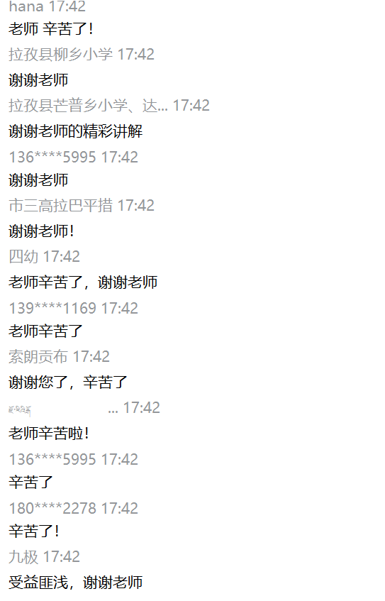 参训教师纷纷表示,本次培训开阔了视野、丰富了知识、拓展了能力,更加深切感受到没有中国共产党就没有社会主义新西藏,更加理解科学合理的教学设计可以更好提升教学效率,更加懂得教研能力是现代教师必备的素质,更加认识职业礼仪修养是决定教师教学水平高低的一个重要因素。在今后的工作中一定要厚植爱国主义情怀,不断增强“中华民族一家亲,同心共筑中国梦”和“五个认同”民族团结意识,牢固树立“三个离不开”思想,铸牢中华民族共同体意识,把在培训中学到的知识运用到实际教学中,不断提升自身综合素质,为党育人、为国育才。