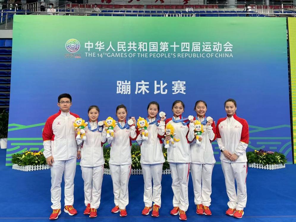 9月5日,蹦床女子团体决赛,范心怡同队友获得第二名的好成绩!