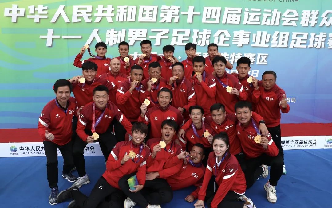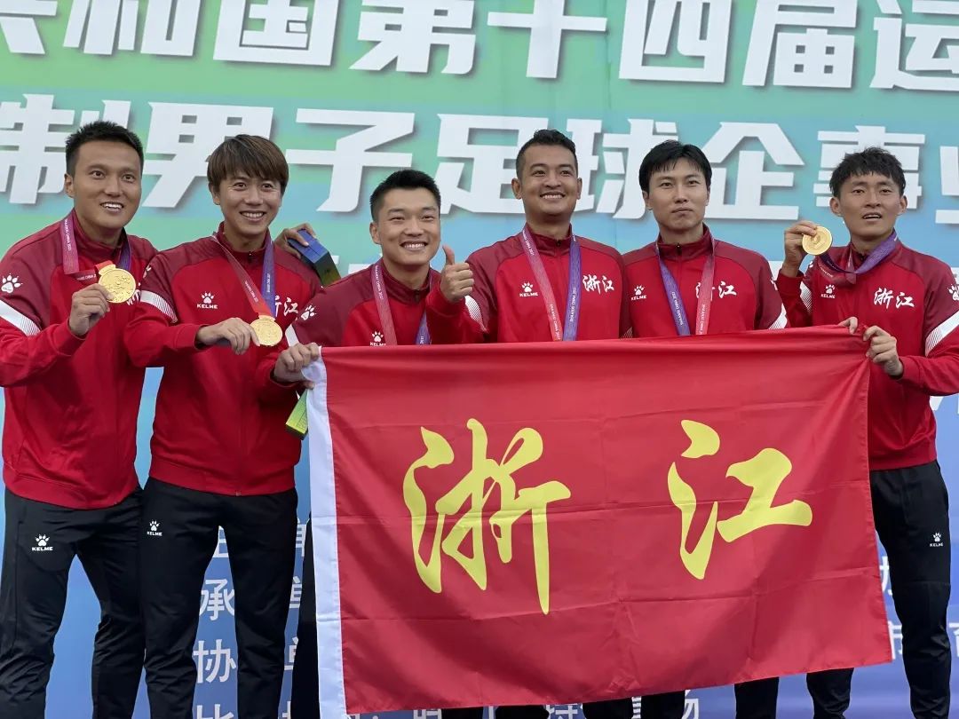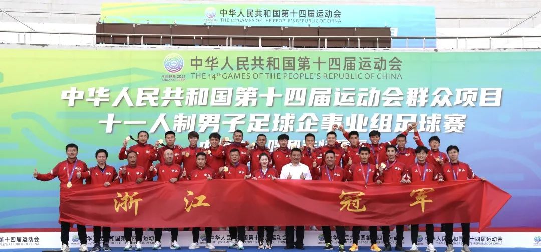 9月27日,在第十四届全运会群众项目企事业组男子足球十一人制决赛中,浙江队与山东队展开了一场激烈拼杀,最终浙江队以1:0战胜对手,以六战全胜进14球0失球的优秀成绩,获得了第十四届全国运动会男子企事业组冠军!