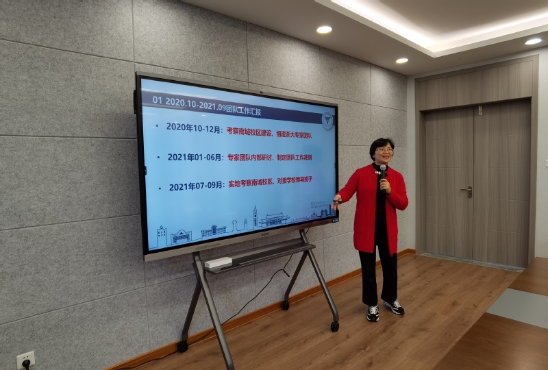 萧山南城小学项目负责人、浙江大学教育学院教授李艳从前期考察、组建团队到对接学校等方面汇报项目进展情况,并重点介绍专家团队的师资力量以及今后一年专家团队的工作重点。