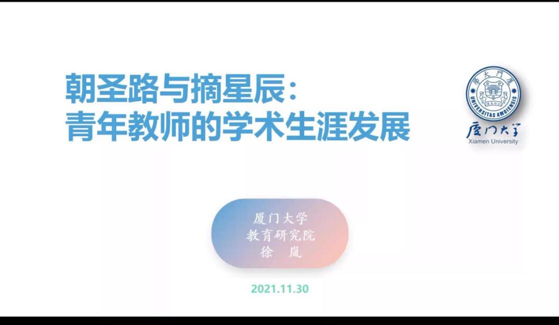11月30日下午,厦门大学教育研究院教授、2005届高等教育学专业校友徐岚应邀为我院青年教师作“朝圣路与摘星辰:青年教师的学术生涯发展”专题讲座。本次活动也是教育学院青年教师联谊会“青椒汇”系列活动暨教育学院求是导师学校系列活动。共有60多名全国多所大学的青年教师及博士生线上参与。本次活动由教育学院青年教师联谊会会长何珊云副教授主持。
