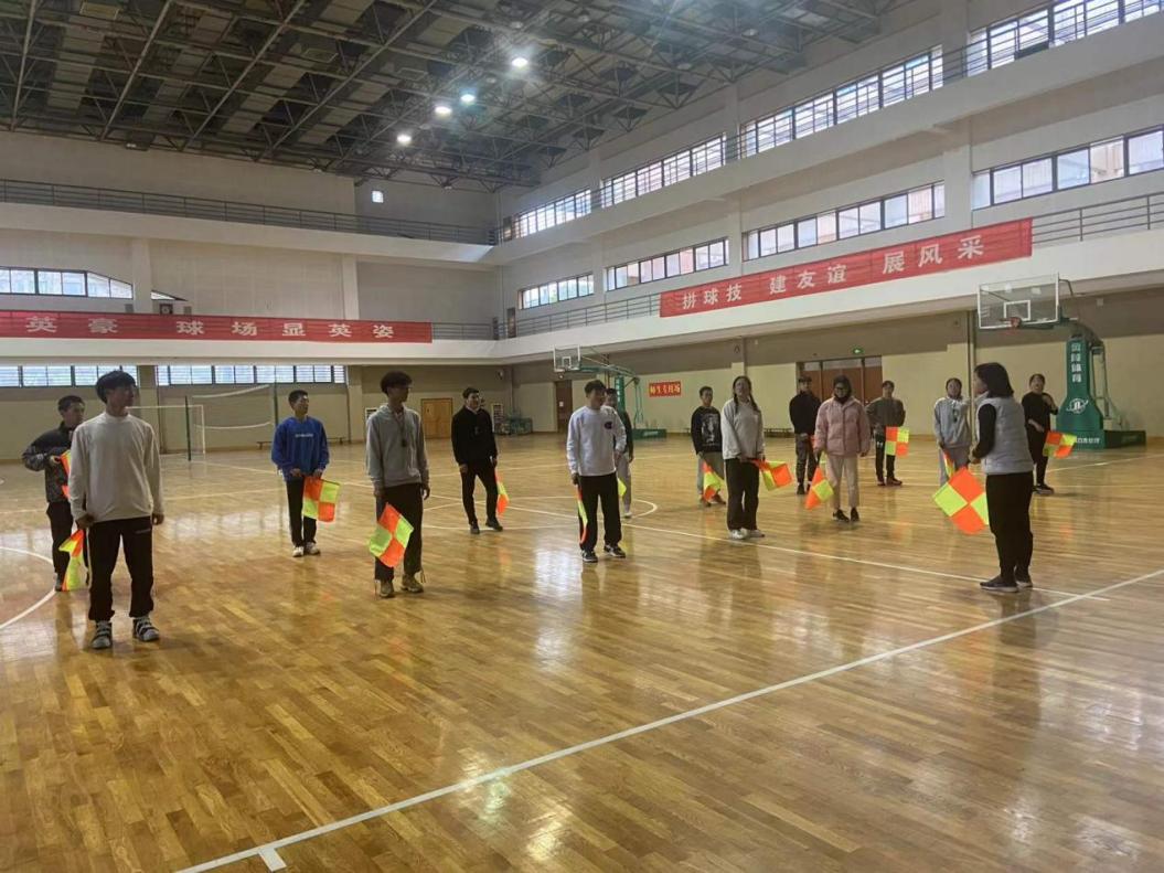 培训期间,主讲教师带领学生走出课堂,来到足球场,实地讲解裁判员执法的旗势、手势、哨音、跑动、选位、判罚的准确性与红黄牌的使用等,通过理论与实践的紧密集合,巩固和加深学生们对裁判知识的理解。