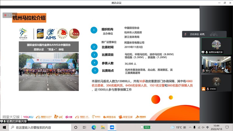 近日,阿里体育赛事专家杨勇先生受浙江大学教育学院周丽君教授邀请走进《体育管理学》课堂,为体育学系2019级体育专业本科生和部分研究生在线作了《体育赛事运营与阿里经验》报告,周丽君教授主持并全程聆听了报告。