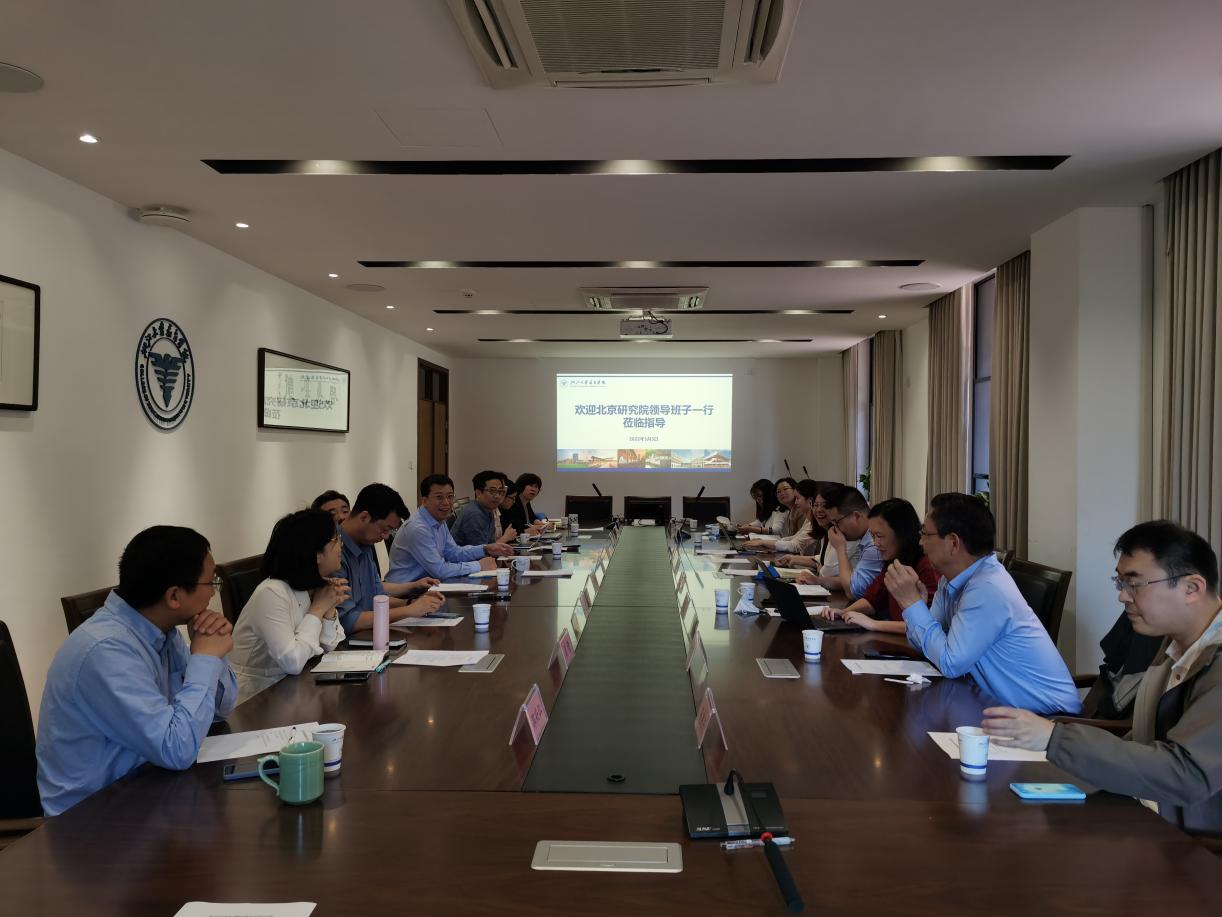 5月5日,浙江大学北京研究院领导班子一行来院调研座谈,双方就智库建设、人才引育、校友联络等方面进行交流与探讨。座谈会由教育学院副院长孙元涛主持。