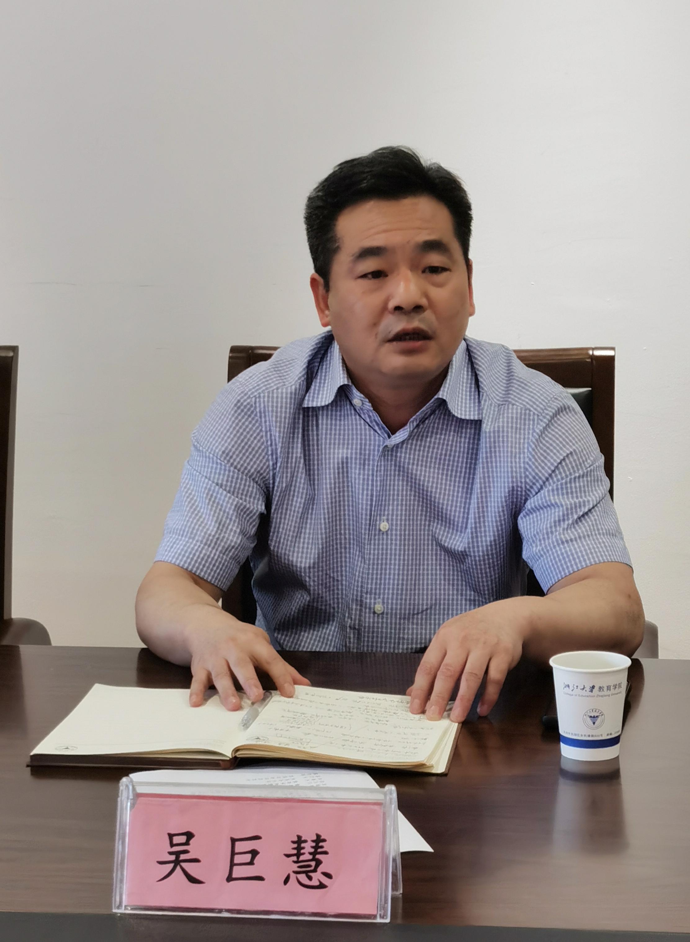 教育学院常务副院长阚阅致欢迎辞,他对北京研究院领导班子一行的到访表示欢迎,他指出,北京研究院作为学校重要的综合发展平台,集聚北京各类优质资源服务学校的创新发展,在教育学院与北京研究院前期良好的合作基础上,希望今后在校友联络、人才引育等方面得到北京研究院更多的支持与指导。