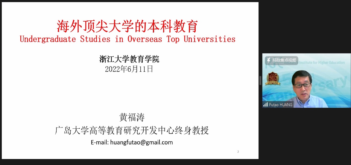 6月11日,日本广岛大学的黄福涛教授以“海外顶尖大学的本科教育”为主题作主题讲座。黄教授首先提出关于什么是一流大学的本科教育以及世界一流大学的评判标准的相关问题,而后从比较的视角分析了国内外如何建设一流本科。黄教授通过对麻省理工学院,剑桥大学等世界一流大学进行案例分析,得出研究型大学学士学位课程的相关特点。最后,黄教授从历史和比较的角度谈到了高校课程模式的趋势以及本科课程的特点,并给出相关的问题与启示。在最后的讲座互动环节,黄教授与同学们积极互动,就大家关心的一流本科课程问题进行了进一步探讨。