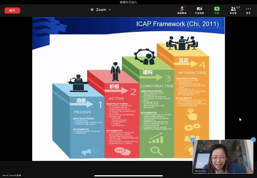 4月16日,北德克萨斯大学的Nancy Meng教授作主题为“面向企业的教学设计:反向设计的项目式与场景式教学(Instructional Design for Corporate Setting: PBL and Scenario Based Learning Backward Designed)”的在线讲座。Nancy Meng教授向师生们介绍了面向企业的PBL和基于情景的反向设计学习。与传统教育路径不同,成为教学设计师的企业路径将我们引向“学习架构师”、“学习分析”、“体验设计师”、“复杂概念表达者”、“绩效教练”、“学习与发展专家”、“培训师”和“战略发展促进者”,强调了PBL(基于项目的学习)和SBL(基于情景的学习)所采用的实施方法。
