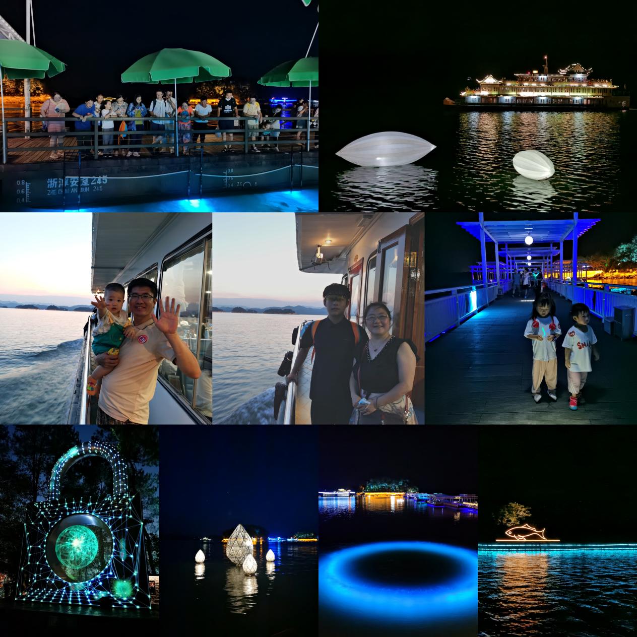 第四站乘船夜游月光岛,欣赏“月光之恋”灯光秀,这是由淳安与中国美院倾情打造的夜游景观,将月光岛的美丽风景与神奇绚烂的灯光组合在一起,营造出唯美而浪漫的感觉。这种沉浸式的体验,让大家不得不赞叹这独特的创意。