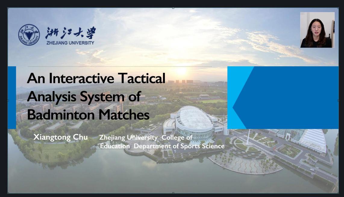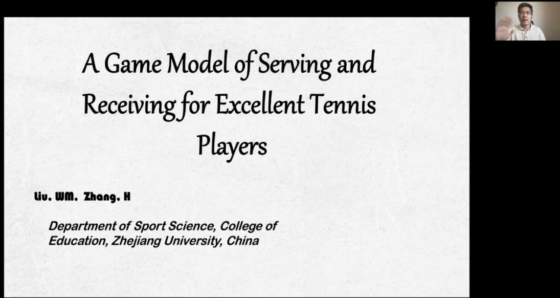 刘文明副教授,博士后周正和博士生储向童作了分会场报告,分别介绍了博弈矩阵、比分态势模型和交互式分析系统在网球、乒乓球和羽毛球项目中的应用。