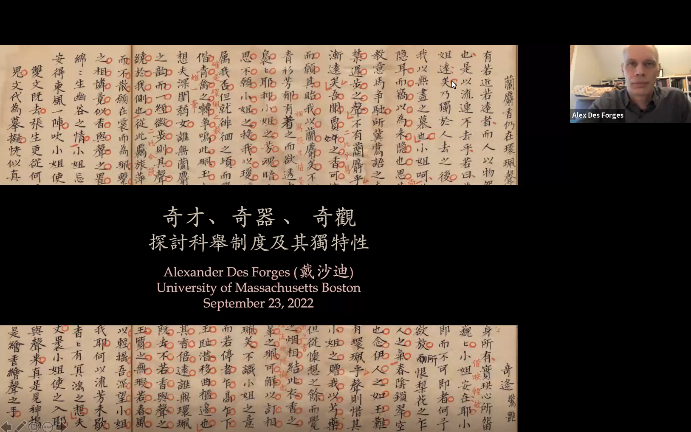 上午的主题报告阶段,由中华炎黄文化研究会科举研究分会主席团主席、厦门大学考试研究中心副主任张亚群教授主持。美国马萨诸塞大学波士顿校区戴沙迪教授报告了《奇才、奇器、奇观:探讨科举制度及其独特性》,认为,“奇才”作为考生渴望的称赞之一,表示文章的风格、作者的想象力都出众。“奇观”就是外来的传教士、商人和外交官员遇到中国科举制度的某方面——或者是考场设施,或者是读书习惯——不可抑遏的反应。然而在奇才、奇观的背后往往有“奇器”的现实。
