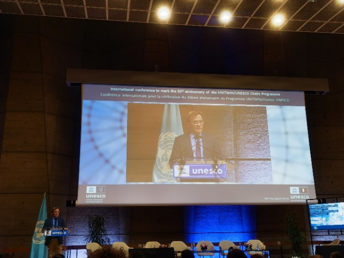 为纪念联合国教科文组织姊妹大学/教席计划建立30周年,2022年11月3日至4日联合国教科文组织在巴黎总部围绕 "为公正和可持续未来变革知识"的主题举行国际会议。此次会议既是纪念教科文组织姊妹大学/教席计划建立30周年的盛会,也是加强教科文组织姊妹大学/教席成员之间及其与教科文组织交流与合作的盛会。联合国教科文组织姊妹大学/教席计划建立于1992年,是教科文组织高等教育领域最大的国际合作网络,其目的是促进全球大学间的合作和联系,通过知识共享和协作工作致力于解决当前世界面临的多重复杂的社会、经济、政治、技术和环境问题。
