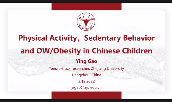 随后,会议进入最后一个议题——Sports, Leisure and Health Promotion(运动休闲与健康促进),议题由浙江大学百人计划研究员黄聪博士主持。浙江大学温煦教授、浙江大学百人计划研究员高莹博士、土耳其哈斯特帕大学Giyasettin Demirhan教授、匈牙利体育大学Miklos Banhidi教授发表了演讲。温煦教授分享的主题是体育活动中能量消耗测量的历史与未来。他概述了从17世纪至20世纪间测量体育活动中能量消耗的各种工具、方法和理论,着重介绍了21世纪结合人工智能技术、计算机视觉技术的高科技测量设备和方法,以及对能量消耗测量的未来展望。高莹博士的演讲关注中国儿童的超重或肥胖现象以及儿童的体力活动和久坐行为。她分析了中国儿童超重与肥胖的数据、大部分儿童缺乏体力活动的现状、儿童久坐行为增加的趋势,论述了体力活动、久坐行为与儿童超重或肥胖之间的关系,并由此提出改进对策。Giyasettin Demirhan教授分享的主题是体育活动与心理功能之间的关系。他首先介绍了人的身体意识、人与机器的区别,再通过一个视频说明了人的身体、社会性与个性。随后,他结合前人相关研究,论述了体育活动与人的认知功能之间的关系。Miklos Banhidi教授从休闲角度分析了匈牙利布达佩斯的城市发展战略。他介绍了布达佩斯于2013年颁布的城市发展战略,分析了城市设施的地理分布、绿地规划、生态发展、基础设施发展等。从休闲学的角度,他对该发展战略提出批判性思考。