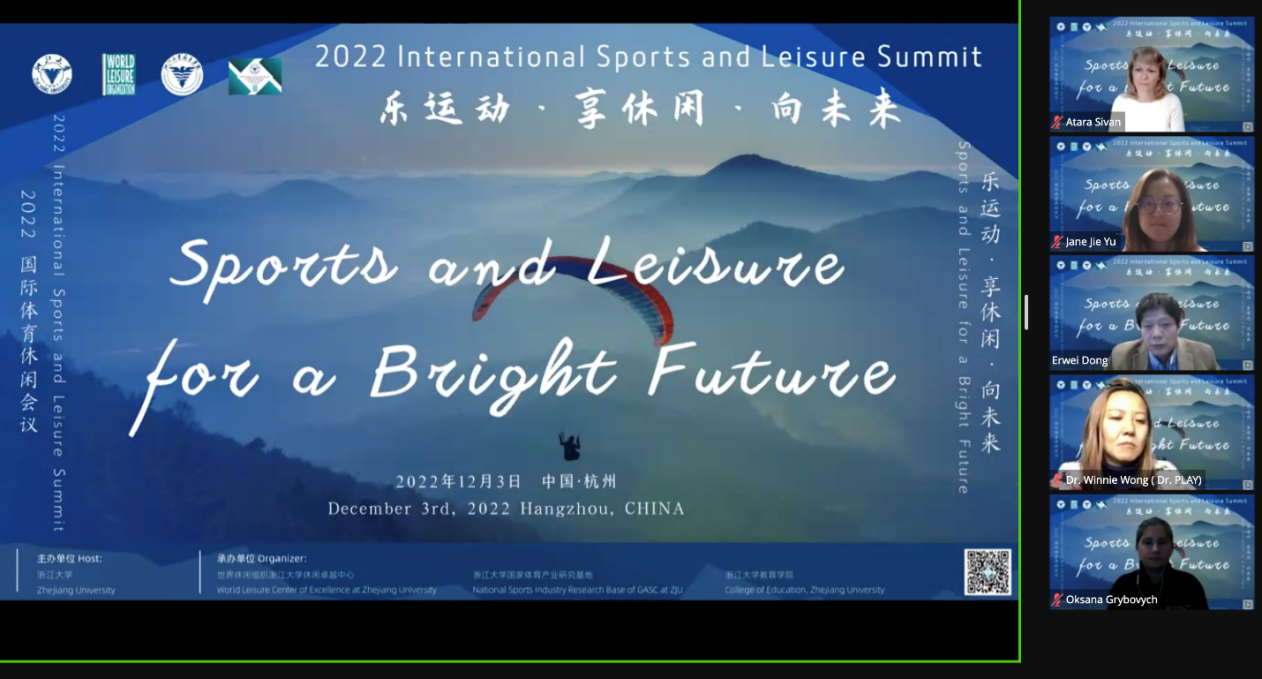 12月3日,由浙江大学主办,世界休闲组织浙江大学休闲卓越中心、浙江大学国家体育产业研究基地以及浙江大学教育学院共同承办的“2022国际体育休闲会议”顺利召开。此次会议以“乐运动·享休闲·向未来”为主题,邀请来自中国、美国、澳大利亚、西班牙、匈牙利、土耳其、尼日利亚等国家和地区的多名运动休闲领域的专家学者齐聚云端,共同探讨国际体育休闲的研究进展与未来展望。