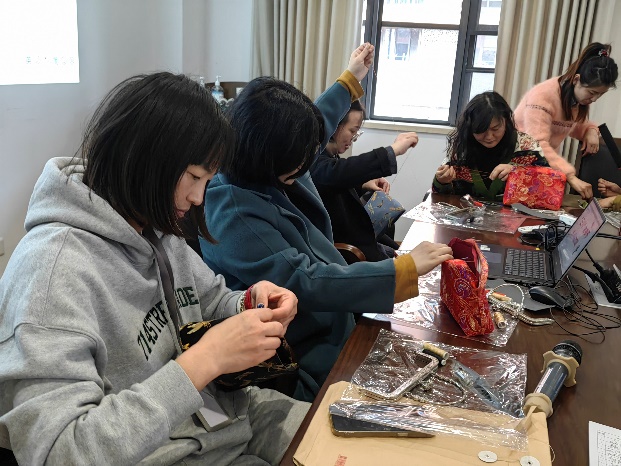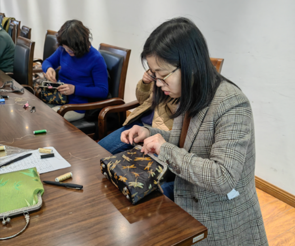 各位老师认真聆听手工包制作的要点,在老师指导下专注创作,一针一线缝制专属手工布艺口金包。