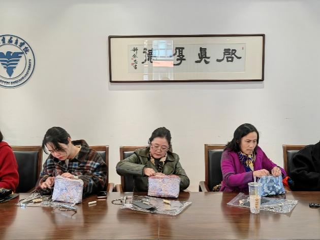 现场气氛轻松愉快,洋溢着女教工们的欢声笑语。在这个初春的美好时节,通过手工活动舒缓了平日工作的紧张情绪,促使大家以更热情饱满的状态投入到日常工作中。
