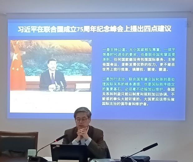讲座伊始,马燕生老师首先对全球治理的概念进行了介绍。从全球治理产生的背景、全球治理的基本要素、全球治理核心要义和基本模式、国际组织分类以及全球治理面临的主要困难与挑战等方面系统地阐明了全球治理的既有成果与未来战略方向。随后,马老师在“中国参与全球治理:历史与现状”这一部分向与会者介绍了50年以来,中国持续为联合国事业贡献中国力量的现实情况。除了人力、财力、物力的贡献,中国还向联合国提供了有关改革完善全球治理体系的原则主张:中国始终坚持走多边主义道路,维护以联合国为核心的国际体系,坚持推动构建人类命运共同体。
