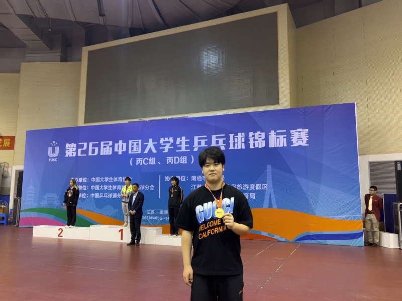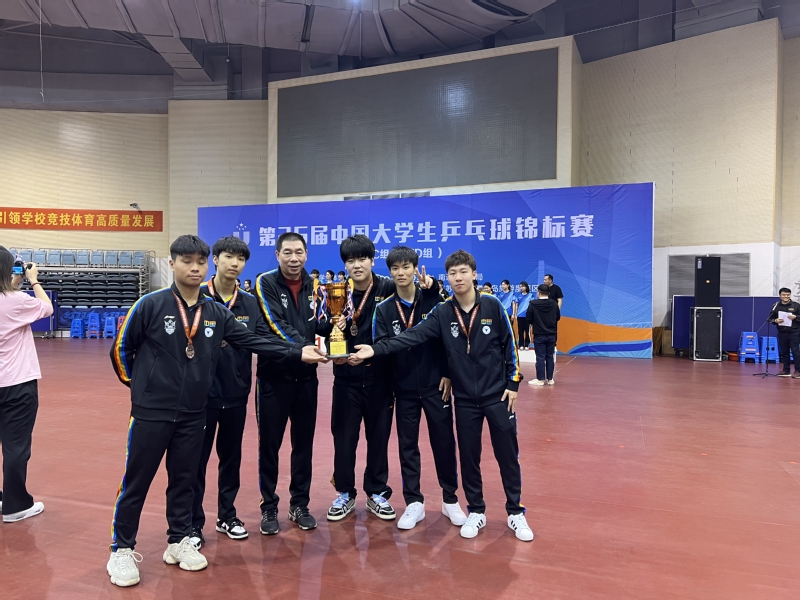 教育学院体育学系运动训练专业2019级赵婕(女),2020级施锦楷、赵起锋(女),2021级吴童妤(女)、吴奕昕(女)、陈奕飞、胡俊豪,2022级张楠(女)、王一衡、高申童,共10名学子组成的乒乓球队代表浙江大学参加丙C组(运动训练组)的比赛,在领队邱亚君老师、主教练恽冰老师的带领下,全力以赴、奋力拼搏,经过8天的激烈角逐,最终获得1金1铜的佳绩。施锦楷、吴童妤两位同学获得“体育道德风尚奖”称号。
