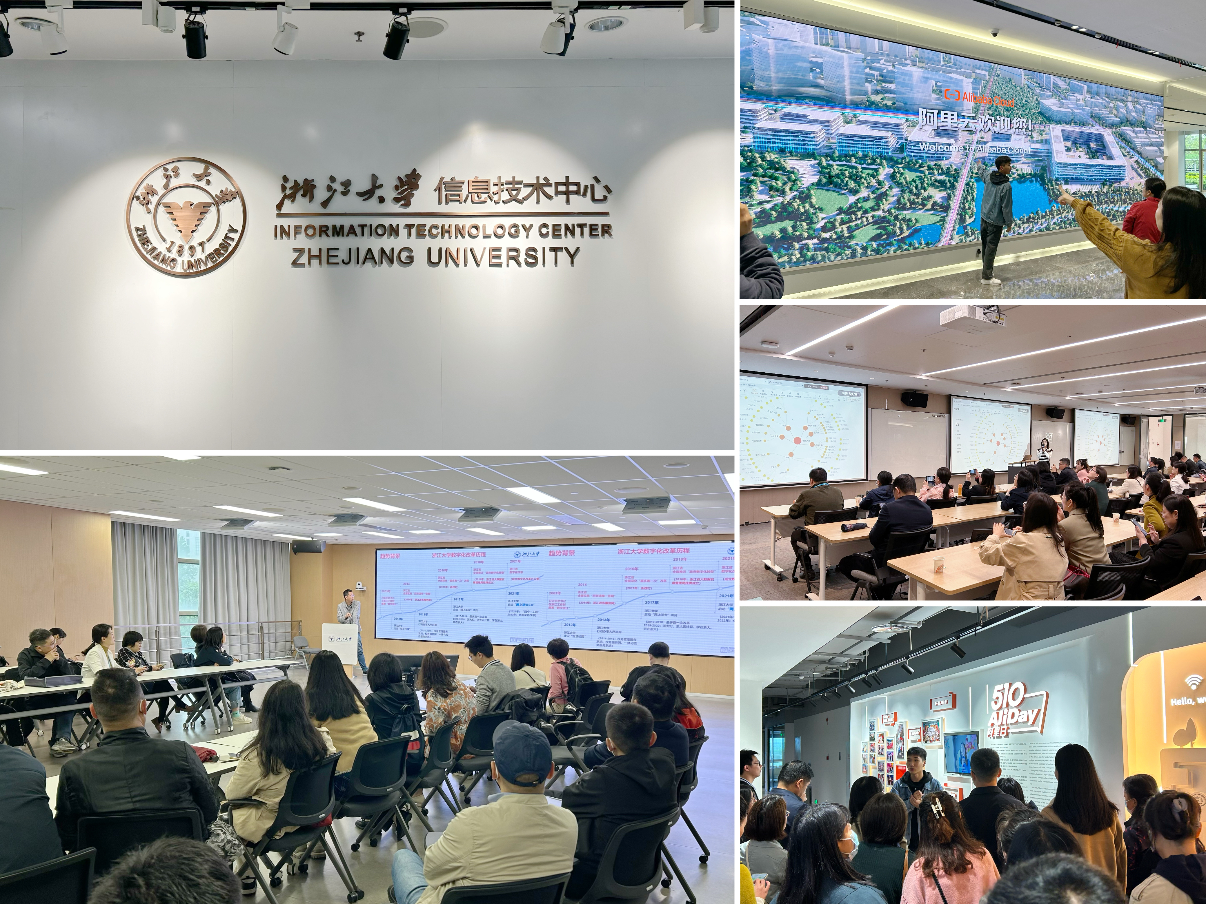研修班围绕“虚拟教研室建设与发展”和“知识图谱理论研究与实战”两大主题,设置了8堂课程与2次现场教学,邀请了来自浙江大学、山东大学、西安交通大学、北京工商大学、国防科技大学等高校知名专家授课,并前往浙江大学信息技术中心与阿里云进行现场教学,深入了解高校数智化建设经验与知识图谱建设实务。