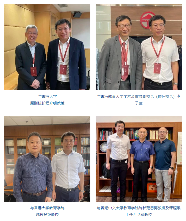 访港期间,阚阅常务副院长分别拜访了香港大学原副校长程介明教授、香港大学教育学院院长杨锐教授、香港教育大学候任校长李子建教授、香港教育大学教育与人类发展学院副院长林质彬(Lim Cher Ping)教授、香港中文大学教育学院院长范息涛教授、香港中文大学教育学院课程与教学系主任尹弘飚教授、澳门大学教育学院院长王闯教授等,并就与相关高校开展联合研究和学生交流等方面的合作达成共识。同时,阚阅常务副院长还走访了我院校友、香港理工大学中文及双语学系祝新华教授,看望在香港攻读博士学位的孙漪和开展访学研究的管颐等同学。