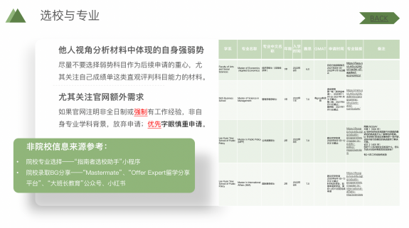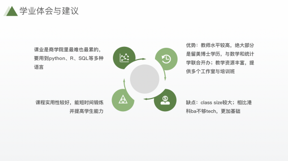 许晨韵首先从选校与专业、材料清单整理、材料准备、申请阶段等方面向同学们介绍了前期决策与经验,并提醒同学们不要盲目相信中介,相关申请材料可以直接查询学校官网。随后,她又从学业体会与建议、留学环境、生活经验等角度向大家分享了香港的生活体验。最后她鼓励同学们不要太执着于排名,可以从专业出发,对意向申请学校的专业进行排序筛选,找到适合自己的学校和专业。