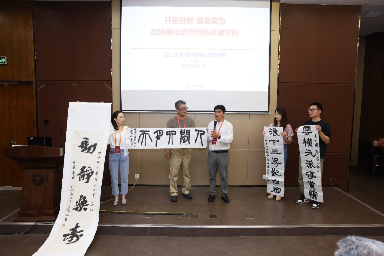 教育学院党委书记吴巨慧老师作总结发言,感谢了校友对浙江大学体育学科发展的大力支持,并表示体育学系会紧紧围绕世界一流学科建设目标,充分发挥学校学科门类齐全的交叉融合优势,走特色发展道路,相信在校友的支持下、全体教工的努力下,会尽快实现一流学科发展的既定目标。他指出,在广大校友的关心支持下,在学院师生的共同努力下,近年来教育学院体育学科取得长足发展,在人才培养、学科建设、科学研究、人才队伍建设、国际交流与合作等方面都取得丰硕成果,在国内外享有良好声誉。他强调,面对学校迈向世界一流大学前列的新征程,体育学科将坚持立德树人根本任务,瞄准国家战略需求和国际学术前沿,充分发挥浙大综合学科优势,走交叉发展、特色发展之路,推动体育学科发展迈上新台阶。体育学科的进一步发展,离不开广大校友的持续关心与大力支持,要积极发挥校友力量,汇聚各方资源,共同助推学院实现新一轮高质量发展。