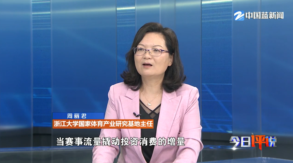 在杭州亚运会倒计时进入100天之际,浙江大学教育学院教授、浙江大学国家体育产业研究基地主任周丽君于6月14日、15日连续两天以访谈嘉宾身份做客浙江卫视《今日评说》栏目,与主持人畅谈“从0到1,亚运会给我们带来了什么”和“从1到10,杭州亚运会如何‘吸睛’又‘吸金’”,从不同视角为观众解读杭州亚运会如何做到“办好一个会,提升一座城”。