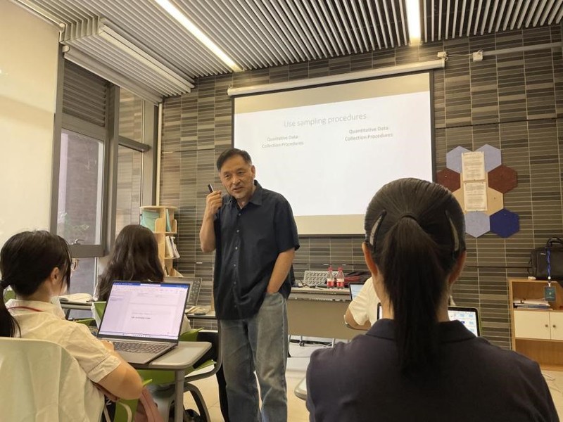 6月15日,严文蕃教授讲授了不同混合研究模型下研究数据的收集策略,以及彼此之间的差异,强调了混合研究设计中的样本如何选择,并以具体的案例做分析。同时讲解了分析量化数据和质性数据的方法,以及将二者进行结合的技巧和注意事项,并带领同学们运用混合研究方法分析具体的研究问题。