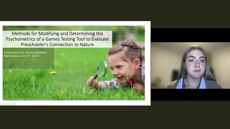 7月13日上午,来自加拿大达尔豪斯大学的助理研究员Jessica MacKeen以“以游戏测试工具的心理测量学方法评估学龄前儿童与自然的联系”为题作主题报告。她在前人的游戏测试工具基础上进行修改以适合加拿大3-5岁的儿童人群,并对测量工具的有效性和可靠性进行评估,同时建议扩大样本量来探究心理测量学,并尽可能多地在不同地理位置使用和改良测量工具。