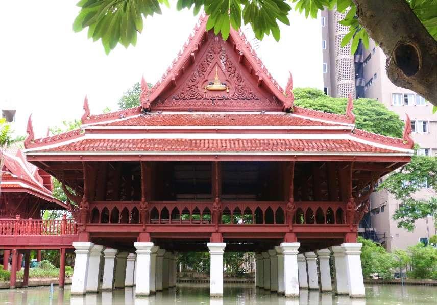 此外,师生一行参观了朱拉隆功大学校园,极具泰式特色的高脚干栏式建筑,鎏金飞檐的屋顶、神秘夸张的色彩,建筑内的摆件、装饰、纹样,极富泰国气息,展现出泰国的民族特色。