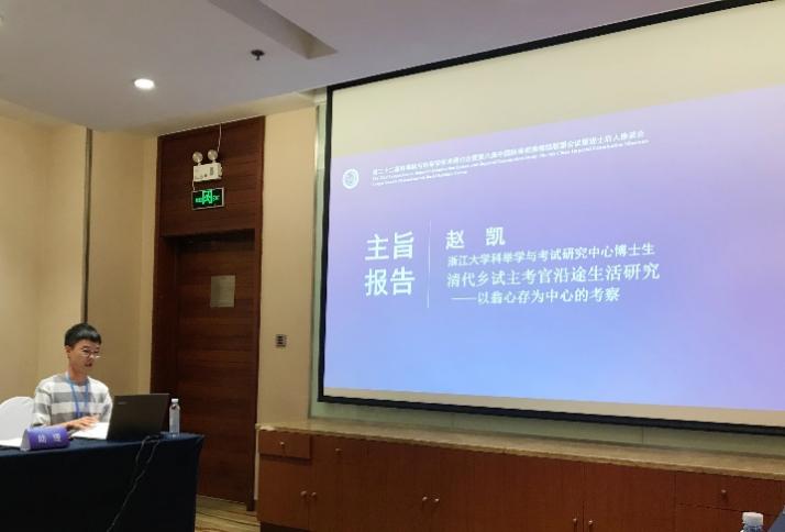 下午的分论坛上,浙江大学文科资深教授、浙江大学科举学考试研究中心主任刘海峰以《科举制评价与科举学研究》、浙江大学科举学考试研究中心副主任李木洲以《清乾隆与光绪年间状元殿试卷之比较》、博士生韦骅峰以《清代广西举人中式率研究》、博士生钟伟春以《清代浙江乡试的开科、试期与科别》、博士生苑津山以《在士道与师道之间:明清科举制下塾师阶层的群体样态》、博士生曾思鑫以《清代乡试研究综述》、博士生赵凯以《清代乡试主考官沿途生活研究——以翁心存为中心的考察》、博士生傅冠华以《清代江南解元研究》、硕士生孙艺源以《明代科举南北中分卷制度前后进士区域分布变化统计与分析》为题分别作了论文报告。另外,浙江大学科举学与考试研究中心副主任李木洲还担任了第六分论坛的主持工作。