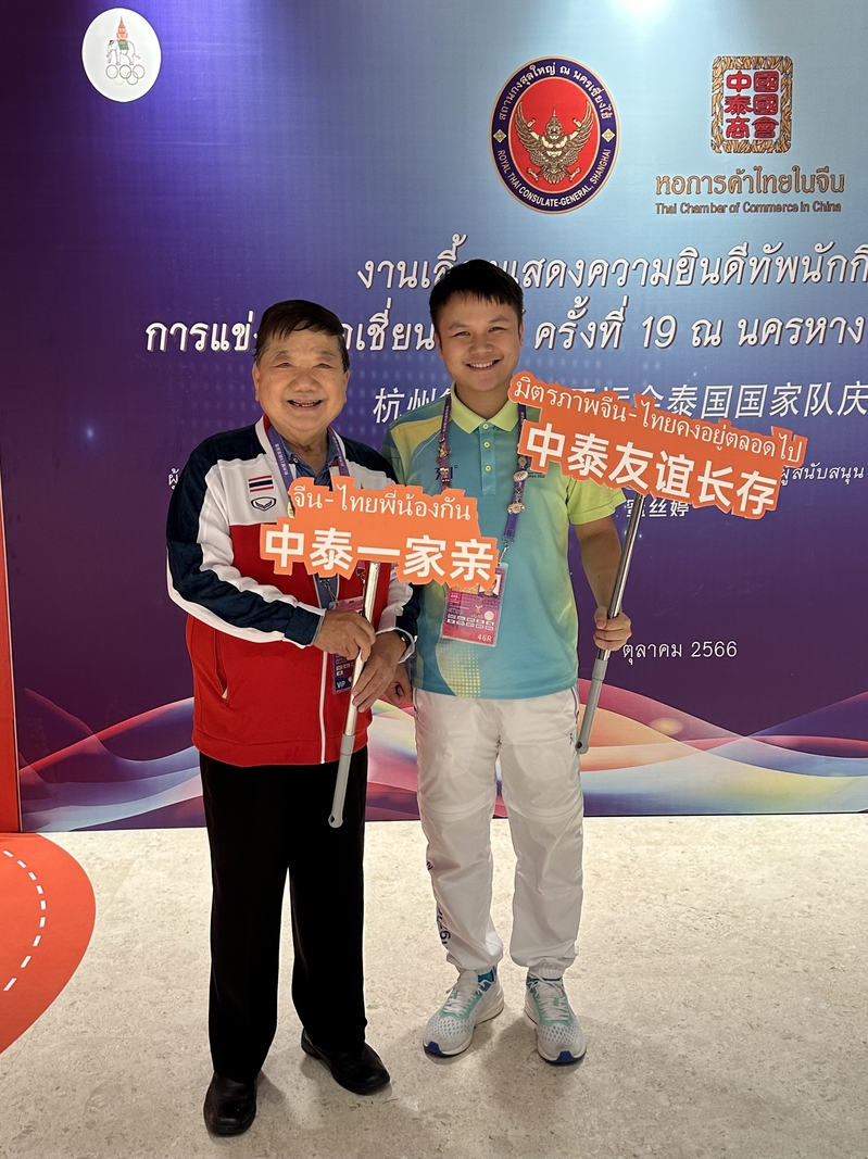 亚运感言:赛时期间我服务的是86岁高龄的泰国奥委会副主席Varin Tansuphasiri。与老爷爷共处的16天,我看到了一位体育工作者对于体育的热爱,那是一种镌刻在生命中热爱。尽管行动不便,却依然坚持每天前往运动员村、泰国国家队理疗中心、体育竞赛场馆开展相关的工作。他对于体育的态度同样也在感染着我,“坚定目标,去克服一切的困难完成好自己的工作”。