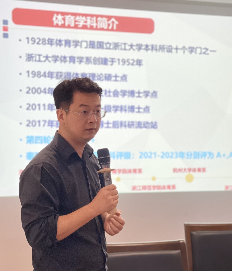 会议由学院副院长胡亮主持。学院党委书记吴巨慧首先致辞,介绍了“智能体育工程”专业申报历程以及新专业设立对体育学本科专业迭代升级以及学科建设的重大意义。胡亮副院长介绍了浙江大学体育学科的现状及未来发展方向,学科将以“智能体育工程”人才培养为重要抓手,走“交叉发展、错位竞争、特色发展”的转型路径。王健教授介绍了“智能体育工程”专业建设情况,结合体育学科的整体情况和发展目标,对本专业的国内外发展现状、专业设立的学科背景、市场需求和建设思路进行了阐述,并针对新专业建设过程中遇到的困境提出了建设意见。彭玉鑫长聘副教授解读了“智能体育工程”专业培养方案,重点从课程设计理念、培养目标、课程体系等方面进行了详细说明。