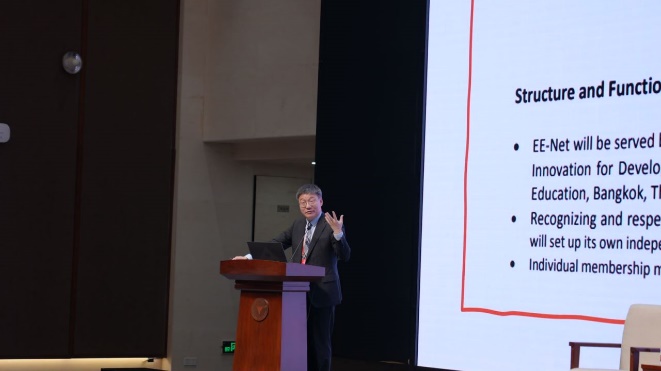 亚瑟·埃利斯作了题为《创业思维与世界观》的主旨报告。他认为成功企业家的心态就是时刻保持前进。其次,他结合美国大学的发展历史,讨论了大学中的创业教育转变。最后,他分享了现代历史上著名的企业家的故事,并运用生动的实例,强调创业思维的培养不仅在大学阶段,还应该在初等教育和中等教育中。
