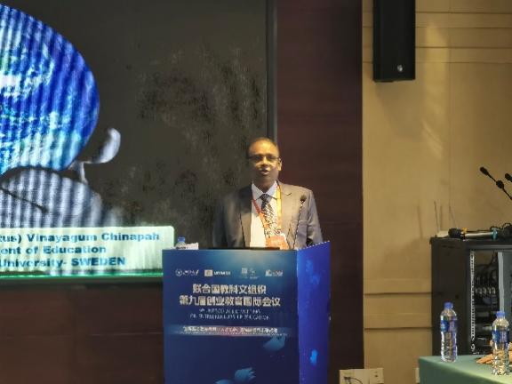 斯拉维察·辛格作了题为《从零开始到研究性创业教育——以克罗地亚奥西耶克大学为例》的主旨报告。她指出,当前时代面临世界巨变的现实条件和人类能力需求不足的不对称性,教育需要立足世界变革的焦点,促进创业学习。斯拉维察·辛格教授基于价值链嵌入模式,提出了新时代所需的创业能力、相关知识和所获成就。最后,她为联合国教科文组织教席的未来行动点明了发展方向。