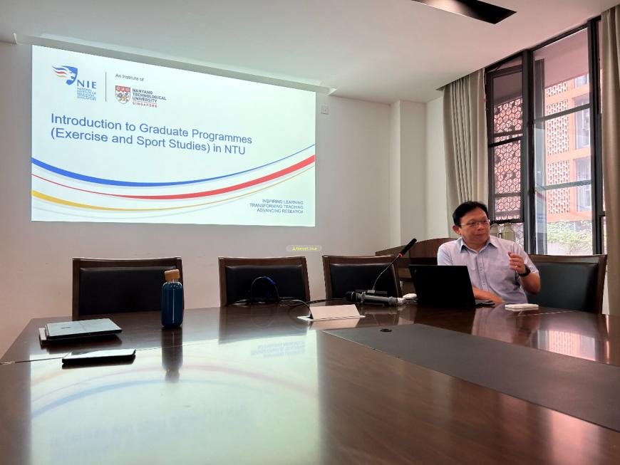 10月27日下午,新加坡南洋理工大学体育教育与运动科学学术组的首届E.W.Barker Chair讲座教授、浙江大学教育学院兼任教授王志庆为我院师生带来了一场关于“Introduction to Graduate Programme (Exercise and Sport Studies) in Nanyang Technological University”(南洋理工大学体育学科研究生教育情况介绍)的精彩讲座。此次讲座吸引了大量对体育科学研究感兴趣以及有意继续深造的本科生和研究生同学前来参加,讲座由浙江大学教育学院副院长兼体育学系系主任胡亮教授主持。