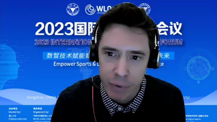 当日下午的主旨演讲环节由浙江大学教育学院高乃春副教授主持。北京体育大学体育休闲与旅游学院副院长蒋依依教授、澳大利亚维多利亚大学约翰·塔尔(John Tower)教授、国家体育总局体育科学研究所丁云霞副教授、荷兰布雷达应用科学大学马塞尔·巴斯蒂安森(Marcel Bastiaansen)教授、浙江大学“百人计划”研究员高莹博士、英国巴斯大学安德鲁·曼利(Andrew Manley)副教授分别发表主旨演讲。主旨演讲嘉宾们在演讲中分享了户外运动装备、体育消费、休闲体验、儿童体育活动的数据研究等,重点讨论了数字技术如何影响体育休闲产业,同时强调了技术创新和数据分析在推动体育休闲行业发展中的作用。